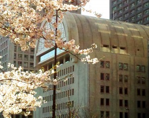 桜とプレスセンタービル