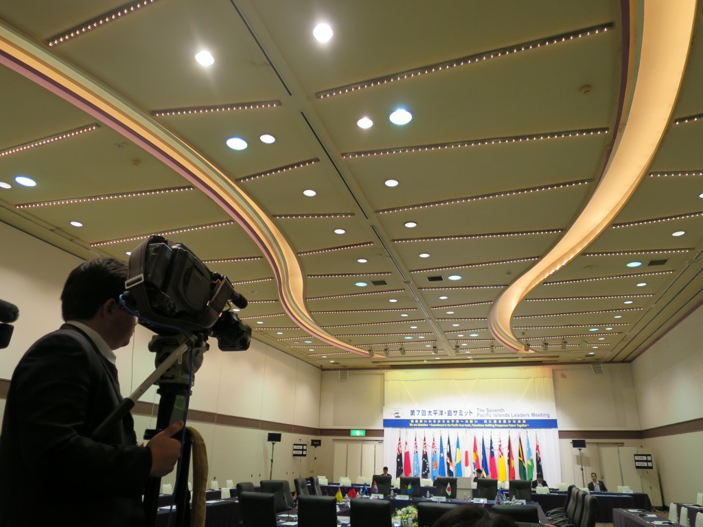 The five journalists invited were from Fiji, Samoa, Papua New Guinea, Tonga, and Palau. In addition to covering PALM7, which was held in Iwaki, Fukushima from May 22 to 23, they also covered related events in Tokyo such as a tea party held at the Imperial Palace for leaders participating in the summit, and the joint opening ceremony for the PALM Trade and Investment Promotion Forum and Pacific Festa 2015. They also met with representatives of Japanese media from Nippon.com and Sankei Shimbun, and visited the National Diet Building and Tokyo Sky Tree.