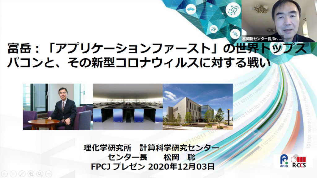 The FPCJ invited the Director of RIKEN Center for Computational Science, Dr. Satoshi Matsuoka, who led the development of Fugaku, to hold an online press briefing from Kobe explaining Fugaku’s capabilities and providing an overview of COVID-19 research using cutting-edge technology.