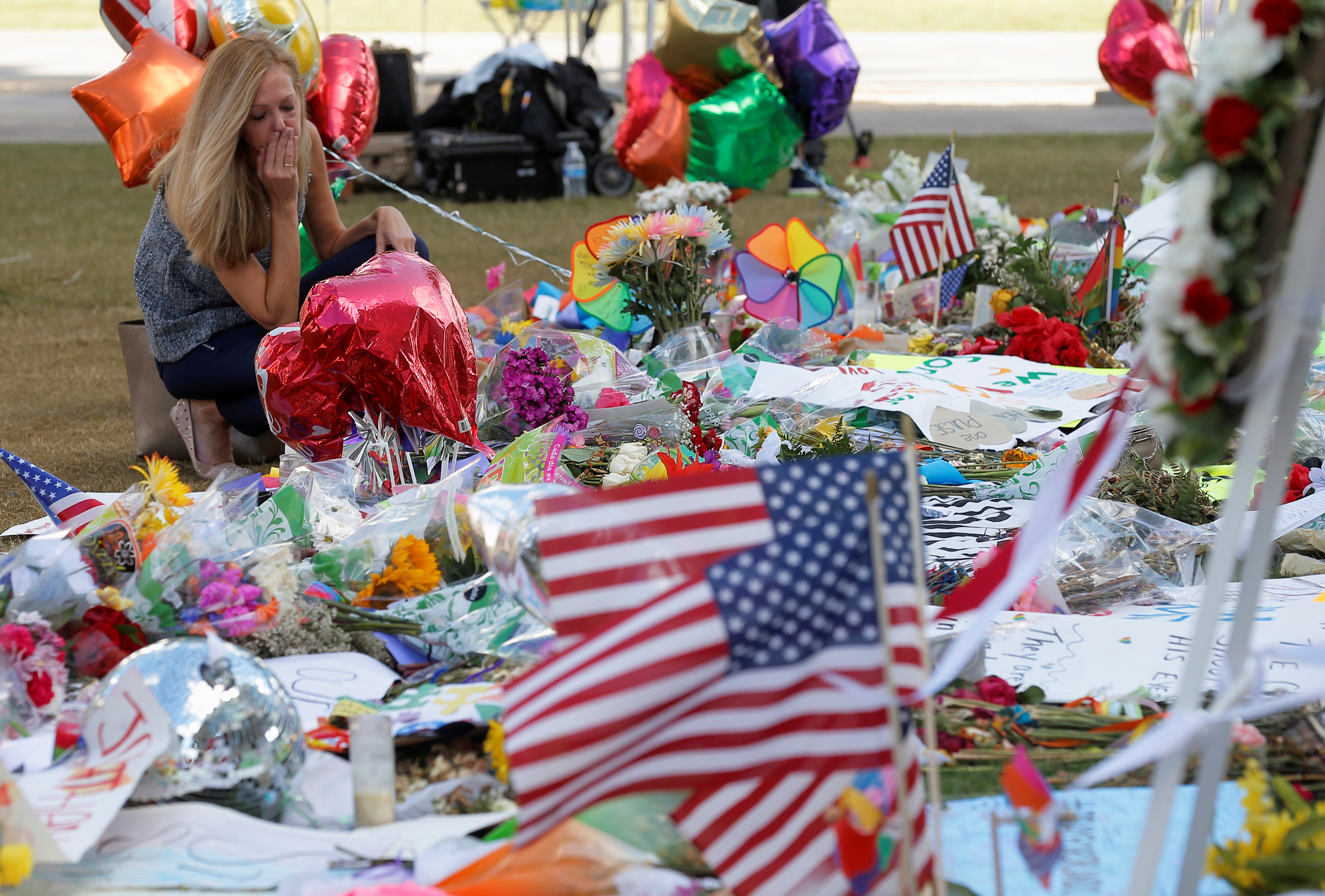 A woman visits the vigil site for the shooting victims at the Pulse gay nightclub in Orlando, Florida, June 16, 2016. REUTERS/Jim Young
